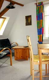 Ferienwohnung im Turm auf dem Rittergut und Ferienhof in Bielatal: 4 Betten, 2 Schlafzimmer, 1 Wohnzimmer, 1 Küche, DU/WC