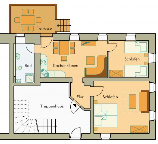 1 Schlafzimmer mit 1 DB + 1 Schlafzimmer mit 2 EB