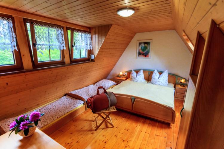 Schlafzimmer 1 DB und 2 Einzelbetten, 1 Aufbettung im Wohnzimmer