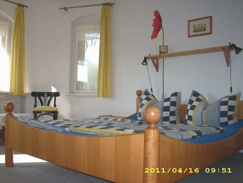 Ferienwohnung im Turm auf dem Rittergut und Ferienhof in Bielatal: 4 Betten, 2 Schlafzimmer, 1 Wohnzimmer, 1 Küche, DU/WC