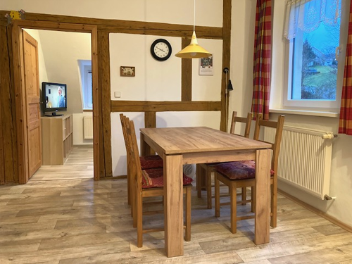 Ferienwohnung Reichstein auf dem Rittergut und Ferienhof in Bielatal: 3 Betten/1 Schlafzimmer, Wohnen/Küche kombiniert, DU/WC