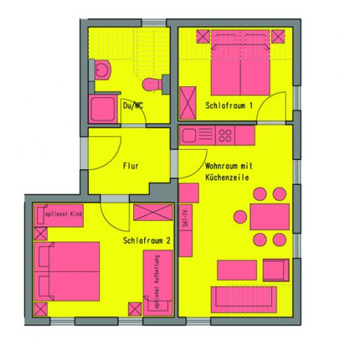 2 Schlafzimmer, Wohnraum mit Küche komplett ausgestattet, DU/WC